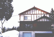 外観 雪国高床式2階建て 食堂の窓から 食堂の中